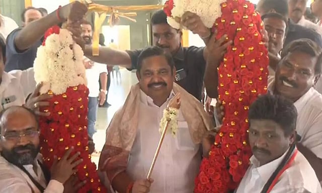 மாற்றுக்கட்சியினர் அதிமுகவில் இணையும் நிகழ்வில் எடப்பாடி பழனிசாமிக்கு 'வேல்' பரிசளிக்கப்பட்டது.