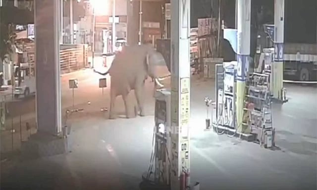 இதுதொடர்பான காட்சிகள் எல்லாம் சமூக வலைதளங்களில் வெளியாகியுள்ளன. பெட்ரோல் பங்கில் யானை சுற்றித் திரிந்த காட்சிகளை பார்த்த பொதுமக்கள் பீதியடைந்துள்ளனர்.