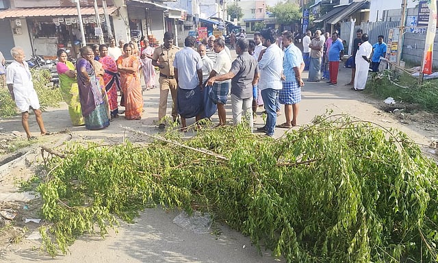 இன்று காலை அப்பகுதியில் குடிநீர் குழாய் இல்லாததை கண்ட அப்பகுதி பொதுமக்கள் 50க்கும் மேற்பட்டோர் மரக்கிளைகளை சாலையில் வெட்டிப்போட்டு முத்துசாமி லே அவுட் பகுதியில் மறியல் போராட்டத்தில் ஈடுபட்டனர். அரை மணி நேரத்திற்கு மேலாக பொது மக்களின் மறியல் போராட்டம் நடைபெற்றதால் அப்பகுதியில் போக்குவரத்து பாதிக்கப்பட்டது.