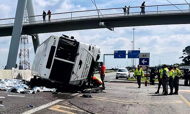 தென் ஆப்பிரிக்க நகரமான ஜோகன்னஸ்பர்க்கில் இன்று பயணிகள் பேருந்து ஒன்று சென்று கொண்டிருந்தது. ஜோகன்னஸ்பர்க் கிழக்கே உள்ள டவுன்ஷிப் அல்லது கேட்லெஹாங்கிலிருந்து மக்களை ஏற்றிச் சென்றது. அப்போது திடீரென பேருந்து கவிழ்ந்து விபத்தில் சிக்கியது.