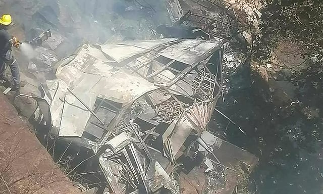 சுமார் 165 அடி உயரத்தில் இருந்து விழுந்த பஸ் தீப்பிடித்து எரிந்தது.இதனால் பஸ்சில் பயணம் செய்தவர்கள் உயிர் பயத்தில் அலறினார்கள். பஸ்சும் சுக்குநூறாக நொறுங்கியது. விழுந்த வேகத்தில் தீப்பிடித்ததால் அதில் இருந்தவர்களால் உடனடியாக வெளியில் வரமுடியவில்லை.