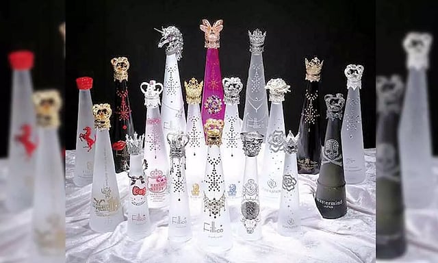 இந்த பாட்டில்கள், விலை உயர்ந்த ஸ்வரோவ்ஸ்கி கற்களால் ஆபரணம் போல வடிவமைக்கப்படுகின்றன.
