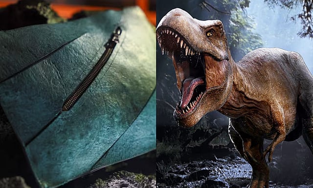 தற்போது தயாரிக்கப்பட்டுள்ள டைனோசர் தோல் ஹேண்ட் பேக் நெதர்லாந்து நாட்டின் ஆம்ஸ்டர்டாமில் உள்ள Art Zoo அருங்காட்சியகத்தில், நிஜமான டி-ரெக்ஸ் எலும்புக்கூட்டிற்கு அடியில் மே 11 வரை காட்சிக்கு வைக்கப்பட்டுள்ளது. அதன் பிறகு, இது ஏலம் விடப்பட உள்ளது.