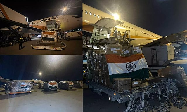 போர்வைகள், கூடாரங்கள், சுகாதாரப் பொருட்கள், நீர் சேமிப்பு டேங்குகள், ஜெனரேட்டர்கள், சமையலறை பாத்திரங்கள், சிறிய நீர் சுத்திகரிப்பான்கள், அத்தியாவசிய மருந்துகள், சக்கர நாற்காலிகள், நீர் சுத்திகரிப்பு மாத்திரைகள் உள்ளிட்டவைகளை இந்தியா அனுப்பி வைத்துள்ளது.