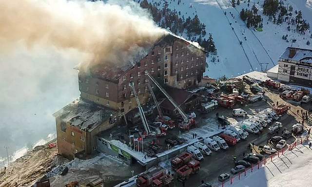 துருக்கி நாட்டின் வடமேற்கு பகுதியில் உள்ள போலு மாகாணத்தில் சுமார் 12 மாடிகளைக் கொண்ட ஓட்டல் மற்றும் பனிச்சறுக்கு விடுதி அமைந்துள்ளது. தற்போது துருக்கியில் 2 வாரம் பள்ளி விடுமுறை விடப்பட்டுள்ளதால் சுற்றுலா பயணிகளின் வருகை அதிகரித்து காணப்பட்டது.