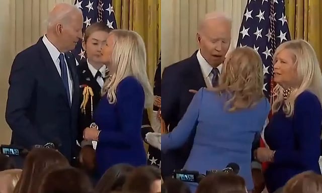 இந்த நிலையில் ஜோ பைடன் தனது மனைவி என நினைத்து வேறொரு பெண்ணுக்கு முத்தம் கொடுக்க முயன்ற சம்பவம் அவரது மனநலம் குறித்த கவலைகளை ஏற்படுத்தியுள்ளது. இது தொடர்பான வீடியோ சமூக வலைத்தளங்களில் வைரலாகி வருகிறது.
