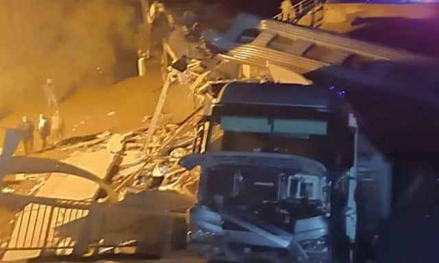 அப்போது தண்டவாளத்தில் வேகமாக வந்த ரெயில் இடிபாடுகள், கான்கிரீட் கற்கள் மீது மோதியது. இதனால் ரெயில் தடம் புரண்டு கவிழ்ந்தது. ரெயில் பெட்டிகள் ஒன்றோடு ஒன்று மோதி கவிழ்ந்தது. உடனே மீட்புக்குழுவினர் சம்பவ இடத்துக்கு விரைந்து சென்றனர்.