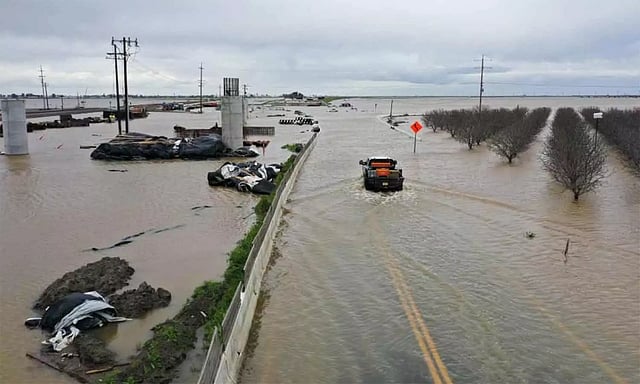 அமெரிக்காவின் கலிபோர்னியா மாநிலத்தில் சூறாவளி புயல் கடுமையாக தாக்கியது. ஏற்கனவே சில நாட்களுக்கு முன்பு கலிபோர்னியாவை புயல் தாக்கியிருந்த நிலையில் மீண்டும் சூறாவளி புயல் தாக்கி உள்ளது. புயல் காரணமாக கனமழை பெய்தது. இதனால் கடும் வெள்ளப்பெருக்கு ஏற்பட்டுள்ளது.