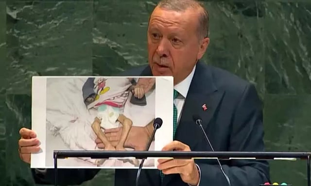 அமெரிக்காவின் நியூயார்க்கில் நடந்த ஐ.நா. பொதுச் சபையில் துருக்கி அதிபர் ரெசெப் தையிப் எர்டோகன் ஆவேசமாக உரையாற்றினார்.