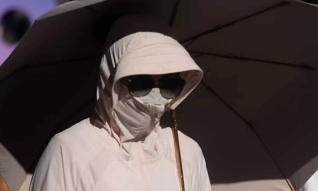 அதன்படி பெண்கள் அகன்ற விளிம்பு கொண்ட முகமூடிகள், சூரிய பாதுகாப்பு கையுறைகள், குளிர்விக்கும் முகமூடிகள் மற்றும் லேசான UV-எதிர்ப்பு ஹூடிகளைப் (தொப்பி வைத்த சட்டை) பயன்படுத்தி சூரிய ஒளியில் இருந்து தங்களை தற்காத்துக் கொள்கிறார்கள். அந்த வகையில் இந்த பெண்ணும் இதனை பின்பற்றி வந்துள்ளார்.