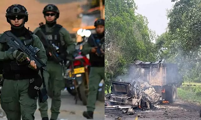 அந்தவகையில் கொலம்பியா எல்லை வழியாக கிளர்ச்சியாளர்கள் நுழைந்தனர். அப்போது அவர்களை தடுக்க முயன்ற ராணுவ வீரர்களுக்கும், கிளர்ச்சியாளர்களுக்கும் இடையே பயங்கர மோதல் நடைபெற்றது. இந்த மோதலில் இருதரப்பிலும் இதுவரை 80-க்கும் மேற்பட்டோர் கொல்லப்பட்டு உள்ளனர். எனவே அங்கு பதற்றமான சூழல் நிலவுகிறது. இதனால் நிலைமையை சமாளிக்க வெனிசுலா எல்லையோர மாகாணங்களில் ராணுவ அவசர நிலையை அறிவித்து கொலம்பியா அதிபர் குஸ்டாவோ பெட்ரோ உத்தரவிட்டுள்ளார்.