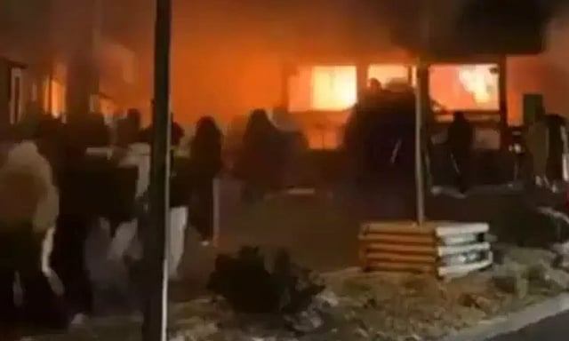 புத்தாண்டு கொண்டாட்டத்தின் ஒரு பகுதியாக அங்கு சிலர் பட்டாசு வெடித்துக் கொண்டிருந்தனர். இதனால் ஏற்பட்ட தீப்பொறி பறந்து அந்த விடுதி கட்டிடம் தீப்பிடித்து எரிந்தது.