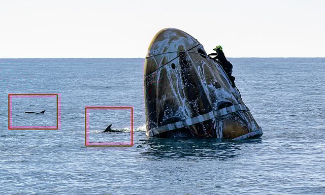 விண்கலம் கடலில் விழுந்தபோது, அதைச் சுற்றி பல டால்பின்கள் மேற்புறத்தில் நீந்திக் கொண்டிருந்தது கேமராக்களில் தெளிவாக தெரிந்தது. இதனை லைவ் செய்துகொண்டிருந்த நாசா விஞ்ஞானிகள் அது மீட்புக் குழுவுக்குக் கிடைத்த பெருமை என்று கூறினர்.