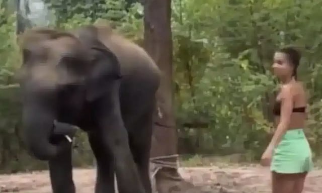 அப்போது ஆவேசம் அடையும் யானை அந்த பெண்ணை தனது துதிக்கையால் தாக்குவதும், அந்த பெண் தூக்கி வீசப்படும் காட்சிகளும் பயனர்களை அதிர்ச்சியடைய செய்துள்ளது. இந்த சம்பவத்தில் அதிர்ஷ்டவசமாக அந்த பெண்ணுக்கு பெரிய அளவில் காயங்கள் எதுவும் ஏற்படவில்லை.