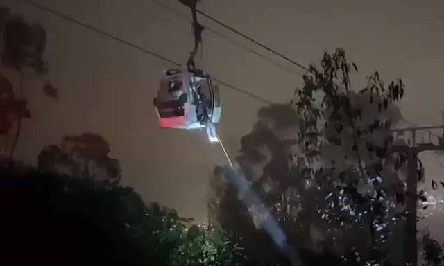 மின்கசிவு காரணமாக கணினி முடங்கியதால் ரோப் கார்கள் நின்றுவிட்டன. கோளாறை சரி செய்து ரோப் கார்களை உடனடியாக இயக்க முடியவில்லை. இதையடுத்து சுற்றுலா பயணிகளை மீட்கும் நடவடிக்கைகள் எடுக்கப்பட்டன.