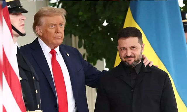 இந்த (ரஷியா - உக்ரைன்) போரையும் நாங்கள் முடிவுக்குக் கொண்டுவருவோம் என்று நான் நம்பிக்கையுடன் உணர்கிறேன்" என்று கூறினார். அப்போது அவர் அருகில் உக்ரைன் அதிபர் ஜெலன்ஸ்கி உடன் இருந்தார்.