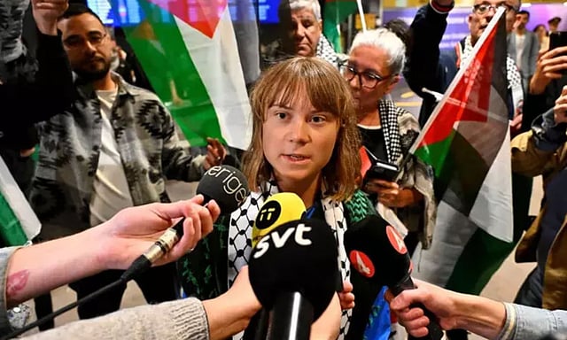 காசாவுக்கு உதவிப் பொருட்களுடன் 'மேடலின்' கப்பலில் சென்ற பிரபல சுற்றுச்சூழல் ஆர்வலர் கிரேட்டா துன்பெர்க், இஸ்ரேலிய ராணுவத்தால் தடுத்து நிறுத்தப்பட்டு, செவ்வாய்க்கிழமை இரவு தனது சொந்த நாடான ஸ்வீடனுக்குத் திருப்பி அனுப்பப்பட்டார்.