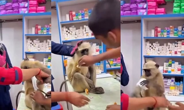 இந்தநிலையில் குரங்கு ஒன்றுக்கு கையில் அடிபட்டது. அப்போது அந்த குரங்கு அங்குள்ள மருந்துக்கடைக்கு தானாக சென்றது. முதலில் அதிர்ச்சியடைந்த கடை ஊழியர், குரங்குக்கு காயம் ஏற்பட்டிருப்பதை பார்த்தார். அங்கு கடைக்கு வந்த வாடிக்கையாளர்களும் குரங்குக்கு உதவி செய்ய முற்பட்டனர். அப்போது அதன் கையில் ஏற்பட்ட காயத்துக்கு மருந்து தடவி முதலுதவி சிகிச்சை அளித்தனர். குரங்கும் எவ்வித எதிர்ப்பும் காட்டாமல் அவர்களுக்கு ஒத்துழைப்பு கொடுத்தது.