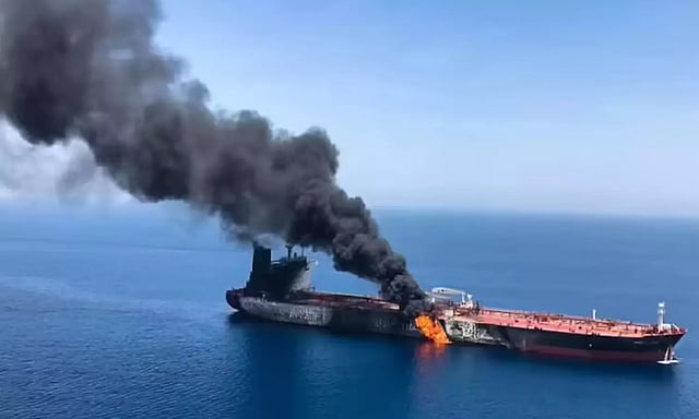 ஓமானின் பாதுகாப்பு அமைச்சகத்தின்படி, மார்ஷல் தீவுகளின் கொடியின் கீழ் பயணித்த எண்ணெய் டேங்கர் எம்.வி. எம்.கே.டி வ்யோம், ஓமானி தலைநகர் மஸ்கட்டின் கடற்கரையிலிருந்து சுமார் 52 கடல் மைல் தொலைவில் தாக்கப்பட்டுள்ளது.