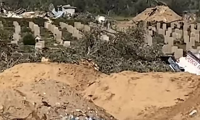 வட காசாவில், இஸ்ரேலின் குண்டு வீச்சில் கான் யூனிஸ் (Khan Younis) பகுதியில் ஒரு இடுகாடு தகர்க்கப்பட்டது.