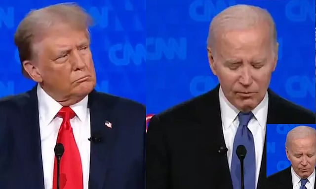 அவர் என்ன செய்கிறார் என்று டிரம்ப் உற்று நோக்கினார். இந்த வீடியோ தற்போது வைரலாகி வருகிறது. மேலும் இந்த மொத்த விவாதத்த்திலும் ஜோ பைடன் பேச்சில் பலமுறை தடுமாற்றம் ஏற்பட்டது. அவரது குரல் தழுதழுத்திருநத்து. சில சமயம் அவர் என்ன பேசுகிறார் என்றே புரியாத சூழல் நிலவியது.