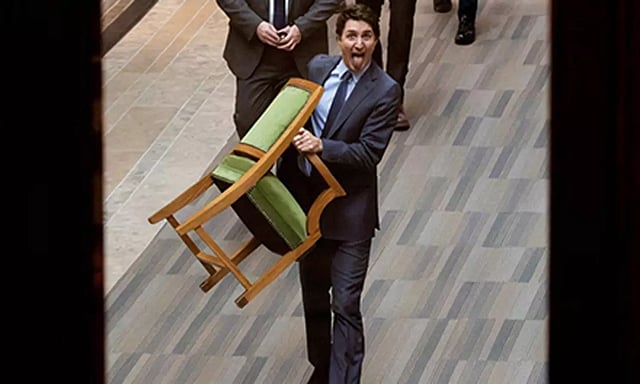 தனது பதவிக்காலம் முடிவடைவதால் தனது அதிருப்தியை வெளிப்படுத்திய ஜஸ்டின் ட்ரூடோ, பாராளுமன்றத்தில் இருந்து தனது நாற்காலியுடன் நாக்கை நீட்டியபடி வெளியேறினார்.