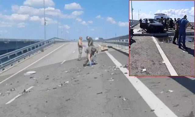 இந்நிலையில், ரஷியாவையும்- அந்த நாட்டுடன் இணைக்கப்பட்ட கிரீமியாவையும் இணைக்கும் கெர்ச் பாலத்தின் மீது இன்று ட்ரோன் மூலம் தாக்குதல் நடத்தப்பட்டுள்ளது. இந்த பாலம் வழியாகத்தான் ரஷிய படைகளுக்கான தளவாடங்கள் உள்ளிட்ட அனைத்து பொருட்களும் அனுப்பப்படுகின்றன. இந்த பாலம் மீது தாக்குதல் நடத்தப்பட்டதால் உடனடியாக பாலம் மூடப்பட்டது. தாக்குதலில் இரண்டு பேர் உயிரிழந்தனர். அவர்களின் மகள் காயமடைந்துள்ளார். இந்த தாக்குதலுக்கு உக்ரைன் மீது ரஷியா குற்றம்சாட்டி உள்ளது.