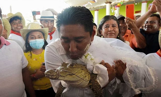 மெக்சிகோ நாட்டின் ஒசாகா பகுதியில் மழை வேண்டி, மேயருக்கும் பெண் முதலைக்கும் பொதுமக்கள் திருமணம் செய்து வைத்த நிகழ்வு அரங்கேறியுள்ளது.