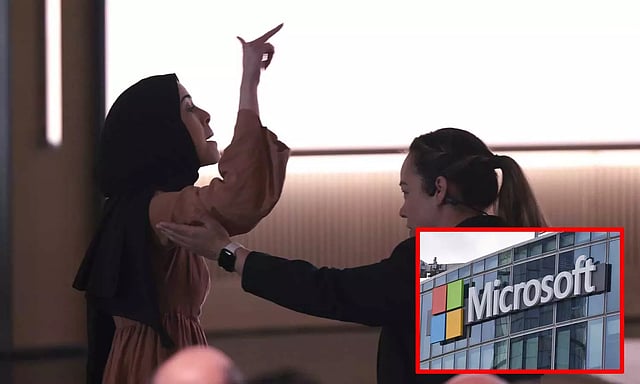 மைக்ரோசாப்ட் AI இன் தலைமை நிர்வாக அதிகாரி முஸ்தபா சுலேமான் பேசிக்கொண்டிருக்கும் ஒரு ஊழியர் "முஸ்தபா, உங்களுக்கு வெட்கமாக இல்லையா" என்று கூச்சலிட்டார்.