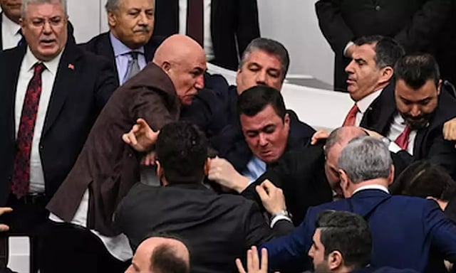 அகின் குர்லெக்கின் பதவி பிரமாணத்தை தடுக்க முயற்சித்தனர். இதனால் ஆளும்கட்சி எம்.பி.க்களுக்கும், எதிர்க்கட்சி எம்.பி.க்களுக்கும் மோதல் ஏற்பட்டு கைகலப்பானது.