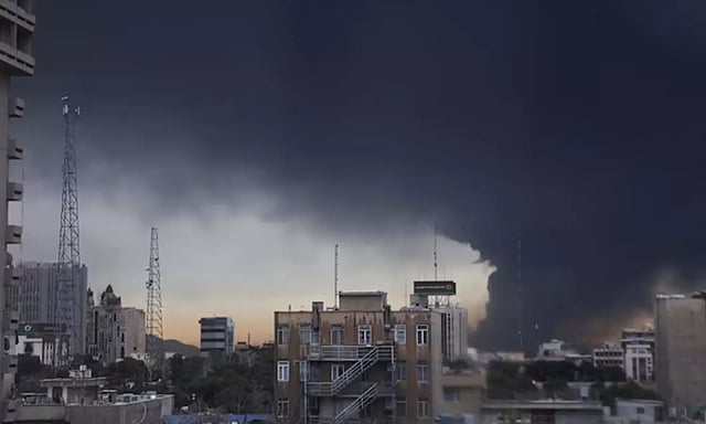 ஈரான் தலைநகர் தெஹ்ரானில் இஸ்ரேலின் வான்வழி தாக்குதல் நடத்தியதில் எரிபொருள் கிடங்கு தீப்பற்றி எரிகிறது.
