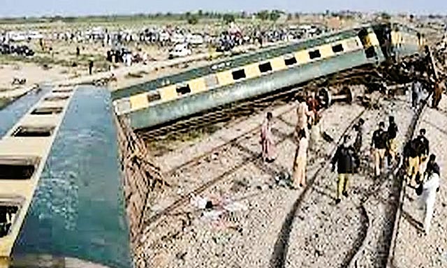 பாகிஸ்தானின் பஞ்சாப் மாகாணம் லாகூரில் இருந்து சிந்து மாகாணம் கராச்சி நோக்கி ஷாலிமர் எக்ஸ்பிரஸ் ரெயில் சென்று கொண்டிருந்தது. அங்குள்ள சதாரா என்ற இடத்துக்கு அருகே சென்றபோது அந்த ரெயில் திடீரென தடம் புரண்டது.