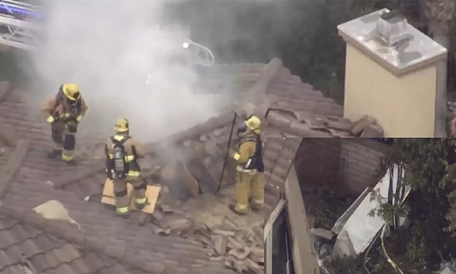 அமெரிக்காவின் கலிபோர்னியா சிமி பள்ளத்தாக்கில் உள்ள வுட்ராஞ்சல் பகுதியில் நடுவானில் பறந்து கொண்டிருந்த சிறிய ரக விமானம் ஒன்று திடீரென கட்டுப்பாட்டை இழந்து குடியிருப்பு பகுதியில் விழுந்து நொறுங்கி தீப்பிடித்தது.