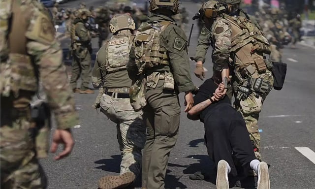 சட்டவிரோத குடிபெயர்த்தோரை கண்டறிய செயல்படும் ஐசிஇ(ICE) நடத்திய குடிவரவு சோதனைகளை எதிர்த்து நூற்றுக்கணக்கானோர் தெருவில் கூடினர். கூட்டத்தைக் கலைக்க எல்லைப் பாதுகாப்புப் படையினர் கண்ணீர்ப்புகை குண்டுகளை பயன்படுத்தினர்.