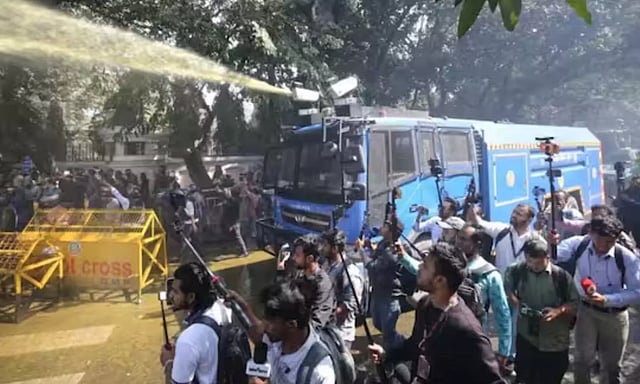 போராட்டக்காரர்கள் தடையை மீறி முன்னேற முயன்றபோது, அவர்களைக் கலைக்கப் பாதுகாப்புப் படையினர் கண்ணீர்ப்புகைக் குண்டுகளை வீசியதுடன், நீர் பீய்ச்சி அடித்தும் தடுத்தனர்.