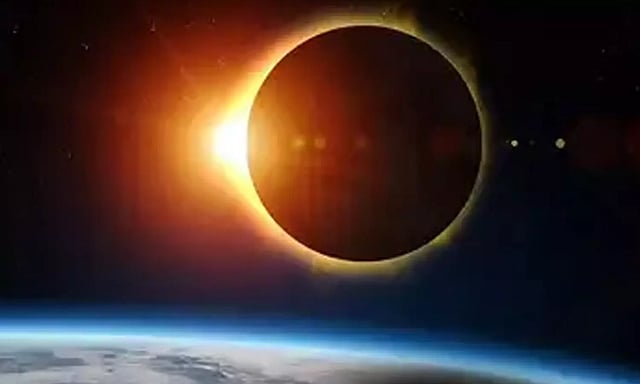 சூரியனுக்கும் பூமிக்கும் நடுவில் சந்திரன் நகர்ந்து வந்து சூரியனை முழுவதுமாக மறைக்கும்போது தான் சூரிய கிரகணம் ஏற்படுகிறது.