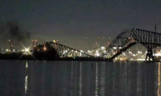 அமெரிக்காவின் மேரிலேண்ட் மாகாணத்தில், பால்டிமோர் பாலம் உள்ளது. இந்த பாலம் 2.6 கி.மீ நீளம் கொண்டது. இந்நிலையில் நள்ளிரவு 1.30 மணிக்கு இந்த பெரிய பாலத்தின் அடியில் சரக்கு கப்பல் ஒன்று துறைமுகம் நோக்கி சென்று கொண்டிருந்தது.