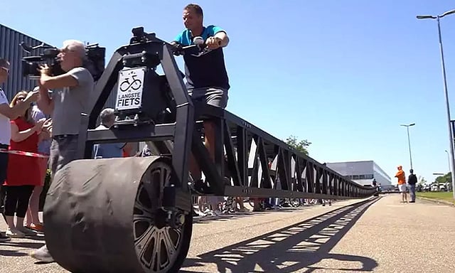 உலகிலேயே நீளமான சைக்கிளை 8 டச்சு பொறியாளர்கள் தயாரித்து சாதனை படைத்துள்ளனர். 180 அடி நீளமுள்ள இந்த சைக்கிள் கின்னஸ் சாதனை புத்தகத்தில் இடம்பெற்றுள்ளது.