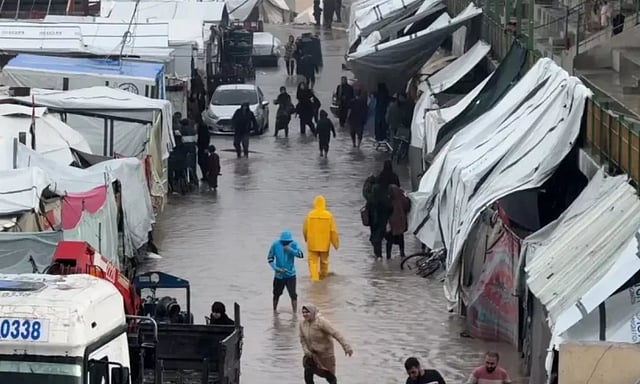 போரில் வீடுகள் அழிக்கப்பட்ட பாலஸ்தீனியர்கள் தற்போது தற்காலிக கூடாரங்களில் வசித்து வருகின்றனர். ஆனால் கூடாரங்கள் தொடர்ந்து இடிந்து விழுகின்றன. மக்கள் குளிர் மற்றும் கனமழையில் தப்பி ஓட வேண்டிய கட்டாயத்தில் உள்ளனர்.