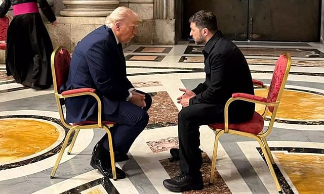 போப் பிரான்சிஸின் இறுதிச் சடங்கிற்கு முன்பு அதிபர் டொனால்ட் டிரம்ப் உக்ரைன் அதிபர் ஜெலென்ஸ்கியை சிறிது நேரம் சந்தித்தார் என்பதை வெள்ளை மாளிகை மற்றும் ஜெலென்ஸ்கியின் அலுவலகம் உறுதிப்படுத்தின.