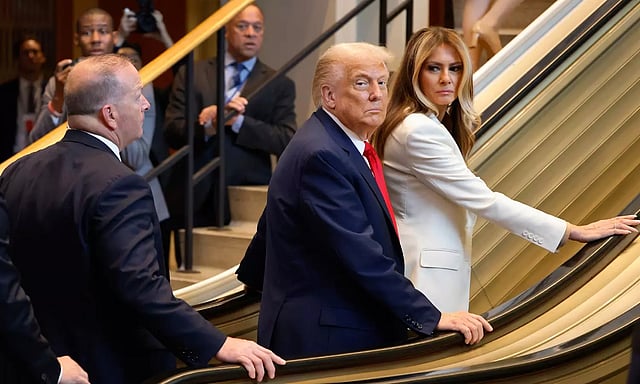நியூயார்க்கில் நேற்று ஐ.நா. சபை பொது உறுப்பினர் கூட்டம் நடந்தது. இதில் பங்கேற்பதற்காக அமெரிக்க அதிபர் டொனால்டு டிரம்ப் தனது மனைவி மெலனியாவுடன் சென்றார். அவர்கள் அங்குள்ள நகரும் படிக்கட்டில் (எஸ்கலேட்டர்) சென்றனர்.
