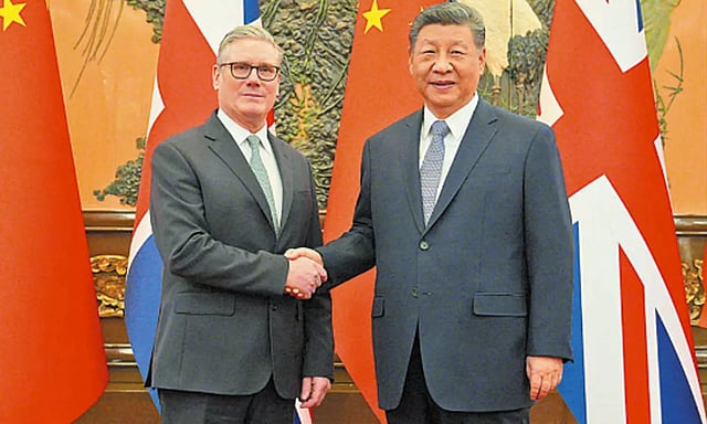 இங்கிலாந்து பிரதமர் கெய்ர் ஸ்டார்மர் 4 நாள் அரசுமுறை பயணமாக சீனா சென்றுள்ளார். தலைநகர் பிஜீங் சென்ற அவருக்கு சிறப்பான வரவேற்பு அளிக்கப்பட்டது. 8 ஆண்டுகளுக்கு பிறகு இங்கிலாந்து பிரதமர் ஒருவர் சீனாவுக்கு செல்வது இது முதல் முறை ஆகும். ஸ்டார்மர் தன்னுடன் 54 தொழில் அதிபர்களை அழைத்துச் சென்றுள்ளார்.