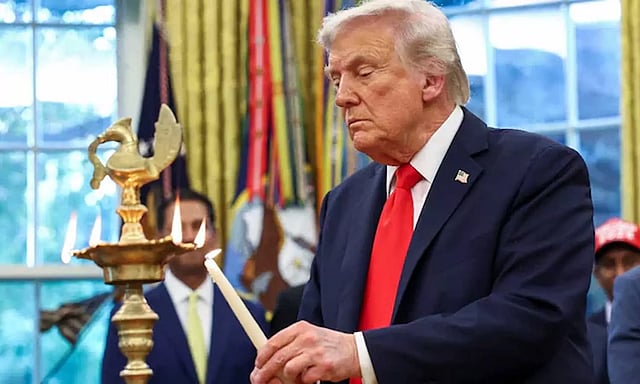 #WATCH | Washington DC | US President Donald Trump lights lamps at the White House on the occassion of Diwali(Source: The White House) pic.twitter.com/fFBTU5KyMl