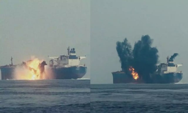 மேலும் கார்டெலியா மூன் கப்பல் மீது 8 பாலிஸ்டிக் மிசைல்களை ஏவியும், டிரோன் மூலமாகவும் தாக்குதல் நடத்தினோம் என்று கூறியுள்ள ஹவுதிக்கள் கப்பல் தீப்பற்றி எரியும் வீடியோவை வெளியிட்டுள்ளனர்.