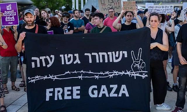 காசாவில் நேதன்யாகு அரசு நடத்தி வரும் இனப்படுகொலையை எதிர்த்து தலைநகர் இஸ்ரேல் தலைநகர் டெல் அவிவில் மக்கள் வீதிகளில் இறங்கி போராட்டம் நடத்தினர்.