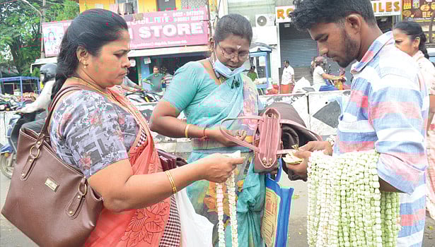 இதேபோன்று மக்கள் பூ மார்க்கெட்டில் பூக்கள் வாங்க குவிந்து வருகின்றனர். பூக்கள் வாங்க பொதுமக்கள் குவிந்ததால் அங்கு போக்குவரத்து நெரிசல் ஏற்பட்டது.