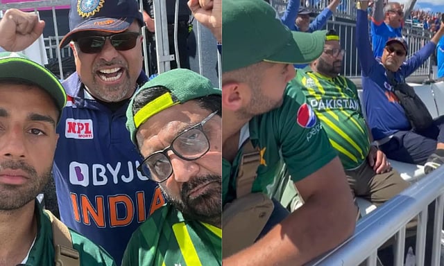 கிரிக்கெட்டை விளையாட்டு என்று கருதுவதையும் தாண்டி இரண்டு நாடுகளுக்குமாக ஈகோ கிளாசாக ரசிகர்கள் மாற்றத் தொடங்கியுள்ளனர். இந்நிலையில் அந்த ஈகோ கிளாஸை எளிதாக விளக்கும் வகையில் ஒரு சுவாரஸ்யமான சம்பவத்தை இந்த போட்டிக்கு வந்த நபர் ஒருவர் அரங்கேற்றியுள்ளார். பாகிஸ்தானைச் சேர்ந்த ரேசா கான் என்ற அந்த கன்டன்ட் கிரியேட்டர், தனது பாகிஸ்தானிய தந்தையையும், இந்திய மாமனாரையும் போட்டிக்கு அழைத்து வந்து இந்தியா பாகிஸ்தான் அணிகள் விளையாடும்போது அவர்களின் ரியாக்சன்களைப் படம்பிடித்து சமூக வலைதளங்களில் வெளியிட்டதைத் தொடர்ந்து வீடியோ வைரலாகி வருகிறது.