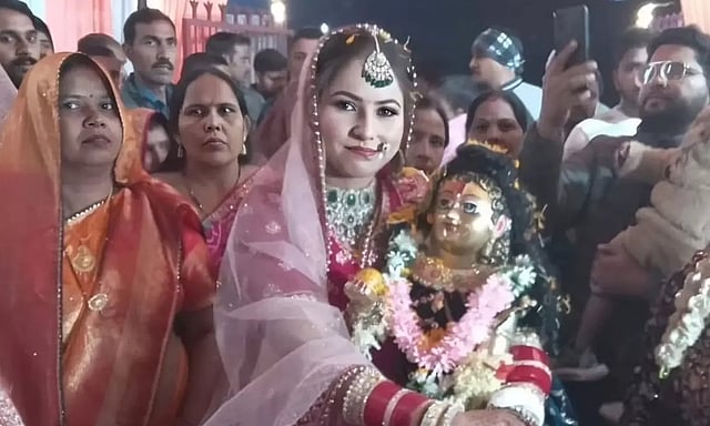 இந்நிலையில், உத்தர பிரதேசத்தில் கிருஷ்ணர்மீது கொண்ட அதீத பக்தியால் உறவினர்கள் முன் அவரது சிலைக்கு மாலை அணிவித்து திருமணம் செய்துகொண்டார் பிங்கி என்ற இளம்பெண்.