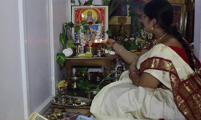 பூக்கள், பழங்கள், பலகாரங்கள், நிவேதனப் பொருட்கள் ஆகியவையும் தயாராக வைத்துக் கொள்ள வேண்டும். பூஜையை காலை அல்லது மாலை செய்யலாம்.