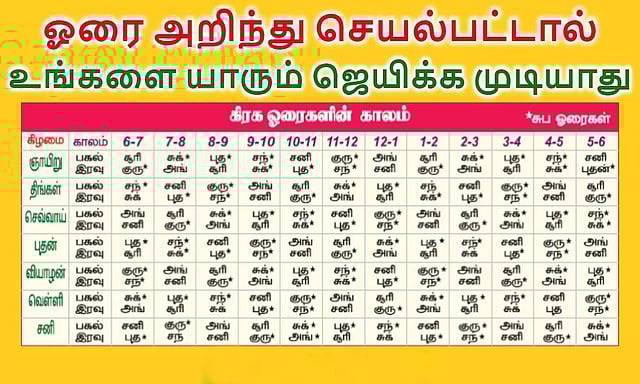 ஓரைகளையும், அவற்றிக்கான பலன்களையும் இங்கே பார்க்கலாம்.